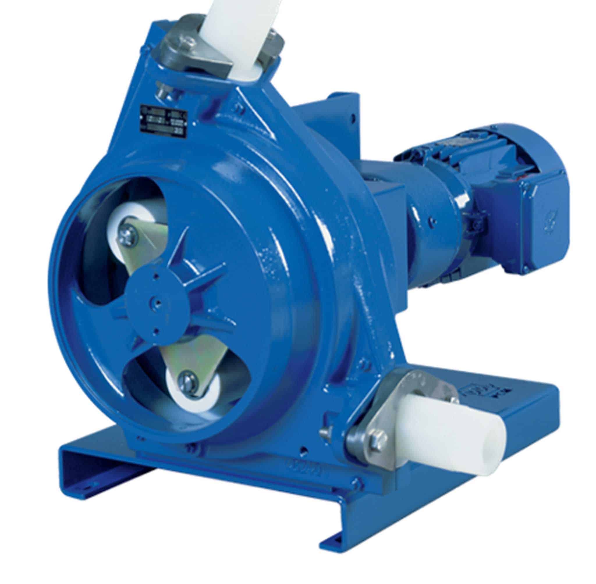 Slangepumpe med ekstremt slitesterk slange for aggressive eller partikkelholdige væsker, med jevn drift.